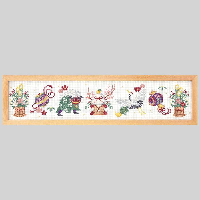 橫框上貼有鏡餅、門松、木槌、手鞠等適合新年的吉祥物。即使您居住在小團體或擁有現代生活方式,只需裝飾一個框架即可為新的一年做好準備。