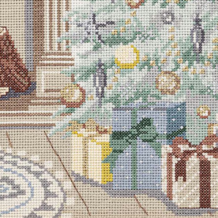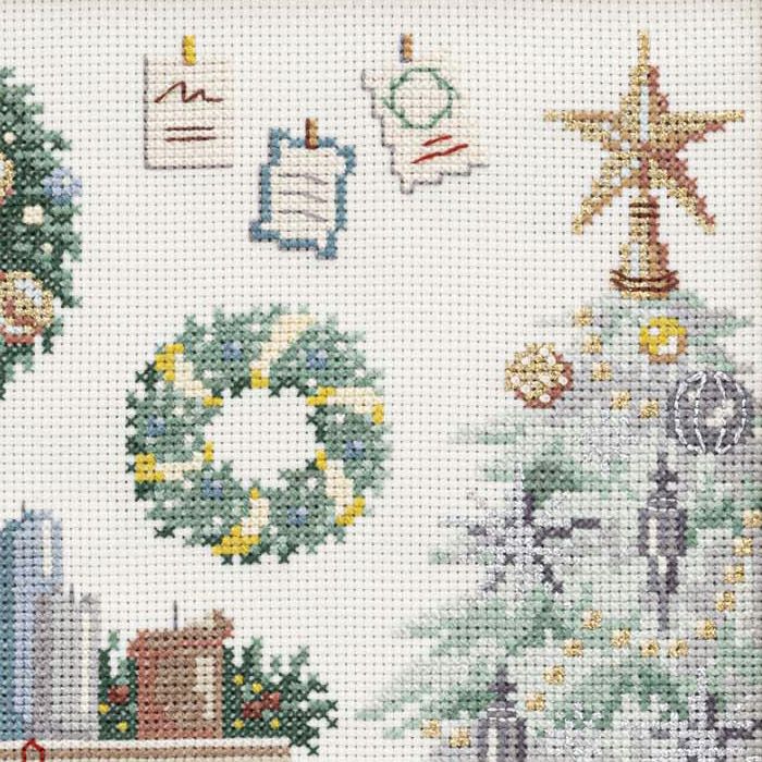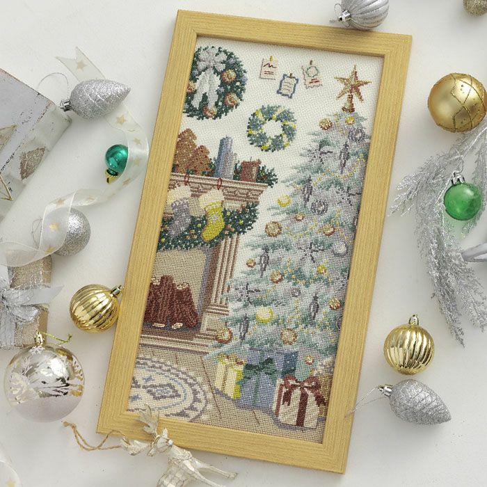 十字繡一間帶壁爐的客廳,以白色和綠色為主色調,為聖誕節裝飾。我們以別緻而成熟的方式表達了一個安靜的聖誕夜的內部。