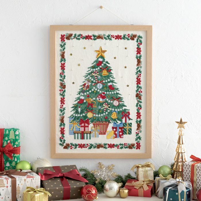 [預購]日本聖誕十字繡材料包 [樹和禮物] 連框