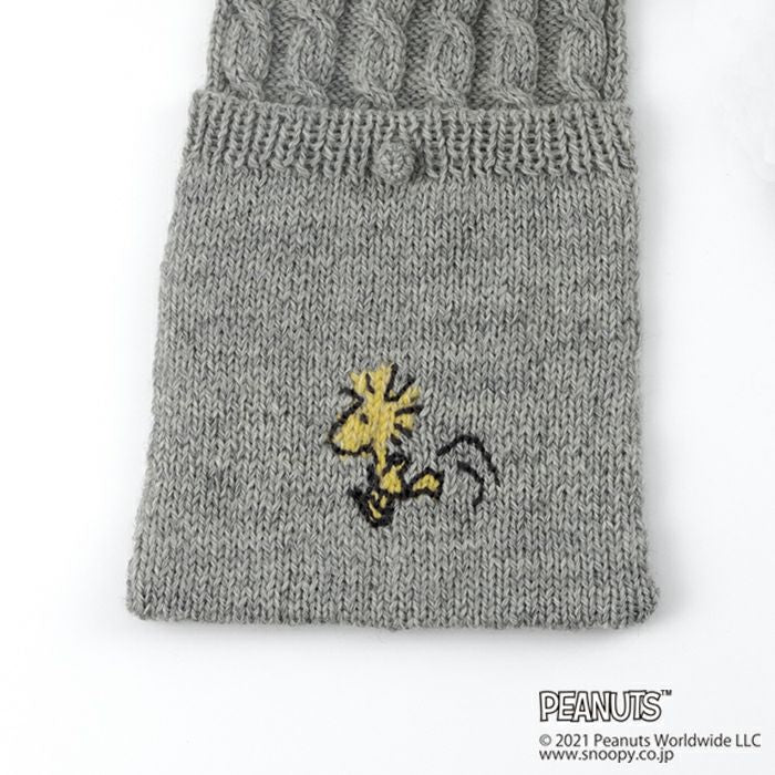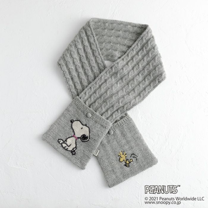 簡單的繩狀針織圍巾兩端飾有編織有史努比和他最好的朋友伍德斯托克的大口袋。在口袋開口的中央添加一個手工編織的紐帶。