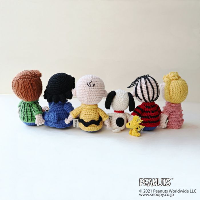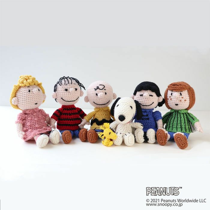 除了史努比和查理布朗之外,這是一套為他們獨特的朋友編織玩具的材料套裝。衣服、鞋子、手指和腳趾的圖案,甚至雀斑都被再現。您可以單獨安排他們就座。