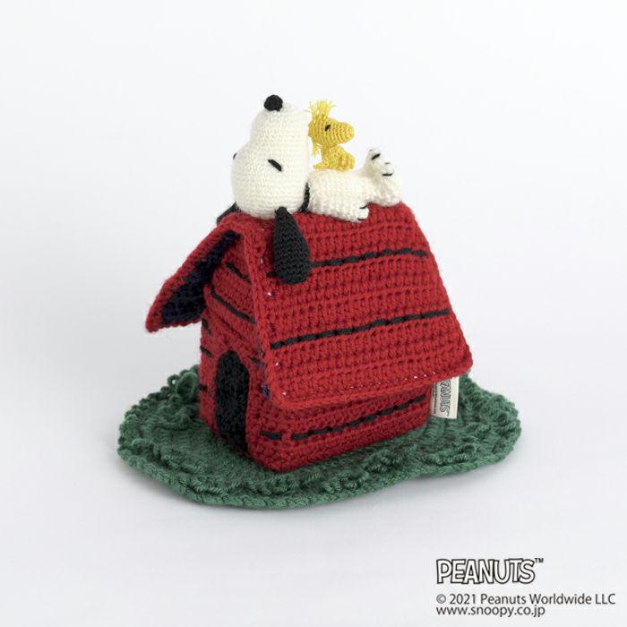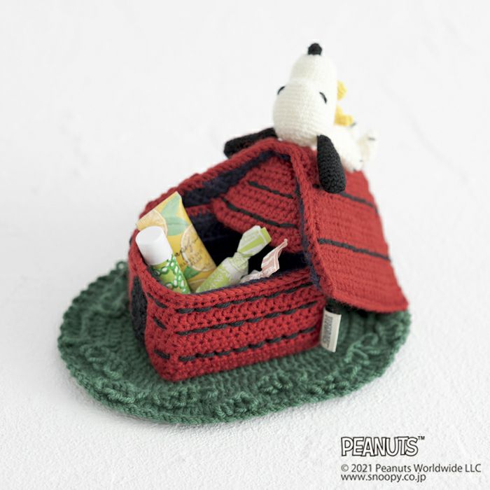 史努比狗屋造型的配件盒。有幽閉恐懼症的史努比總是和他最好的朋友伍德斯托克一起睡在屋頂上。屋頂形狀的蓋子和盒子是用芯完成的。