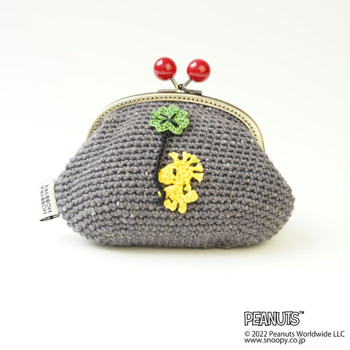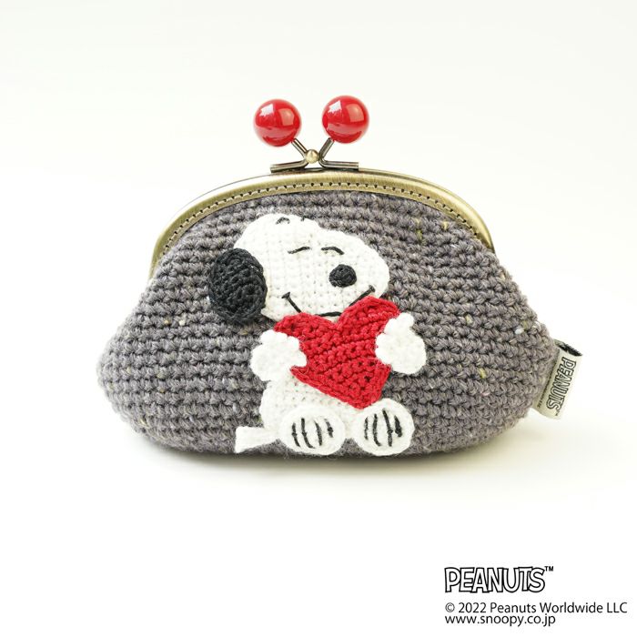 簡單的細針織衣身,利用線的質感,正面擁抱著一顆心的史努比,背面貼有帶有幸運圖案三葉草的木料針織物。這是一個只要拿著它就會讓人感到高興的小包。