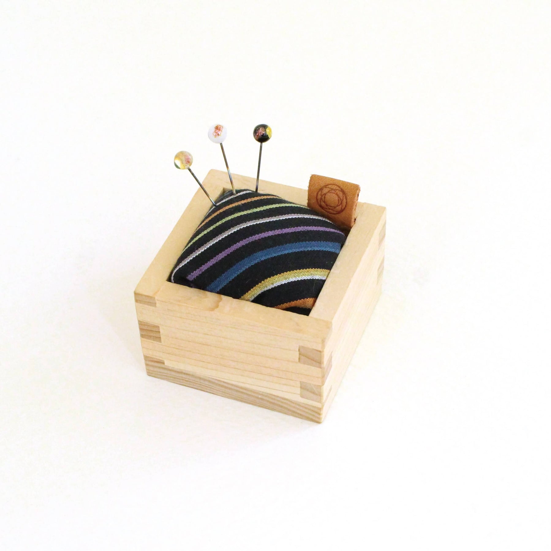 馬蘇盒最初是用來盛米的,後來開始用來盛裝酒杯。這款芳香的日本扁柏木盒內裝有由小倉紡織品製成的針墊,小倉紡織品是一種自江戶時代早期以來在九州北部地區生產的棉織物。